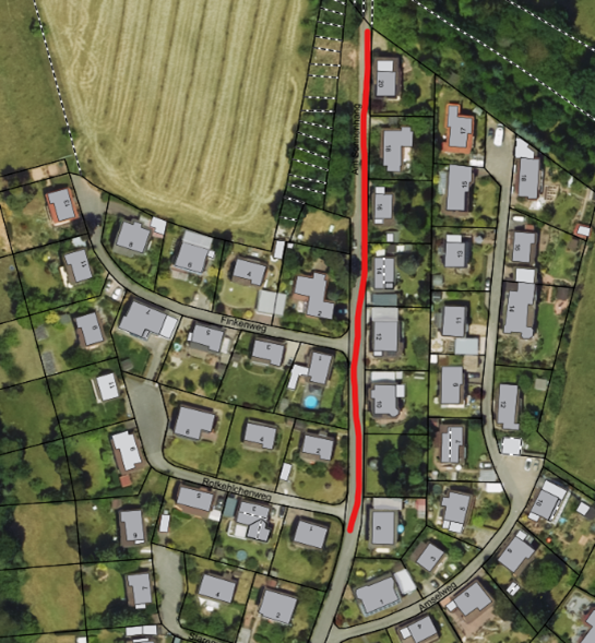 ab Donnerstag, 23.04.2026 bis voraussichtlich Freitag, 24.04.2026 werden Arbeiten im Bereich der Gemeindestraße "Am Sonnenhang" durchgeführt (siehe Grafik). Im besagten Bereich kann es zeitweise zu Einschränkungen der Befahrbarkeit kommen; gleiches gilt für die Durchfahrt bzw. Befahrung der Seitenstraßen Finkenweg und Rotkehlchenweg.